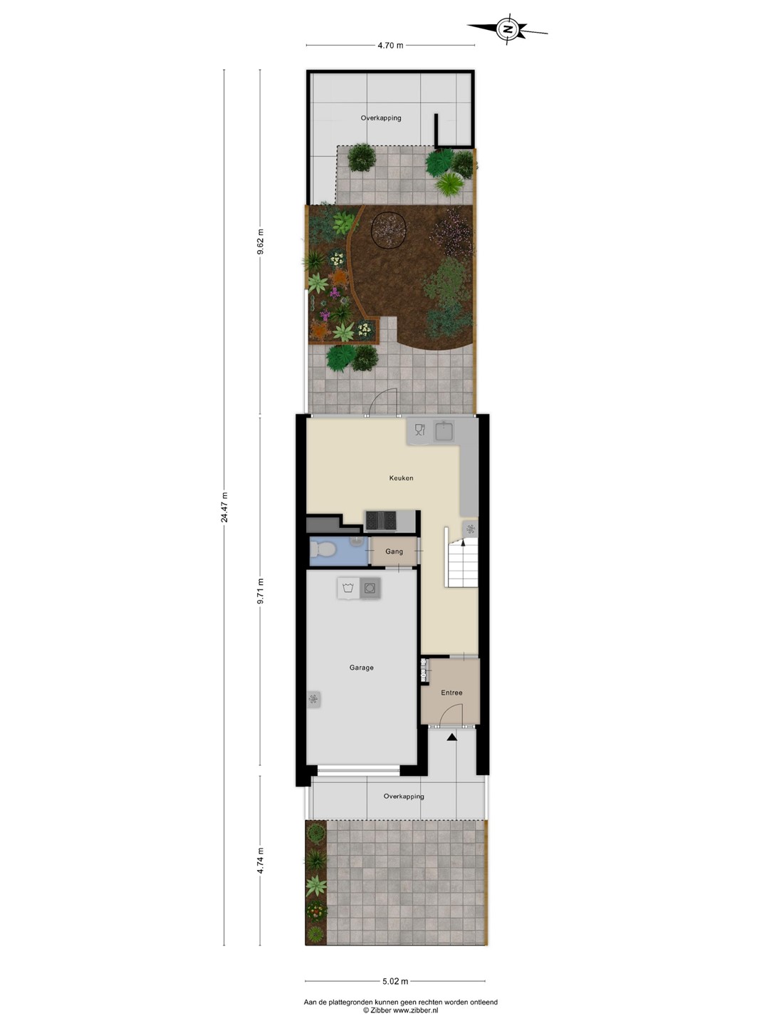 Op de begane grond bevindt zich de inpandige garage, een toilet en een gezellige eetkeuken met doorloop naar de tuin.