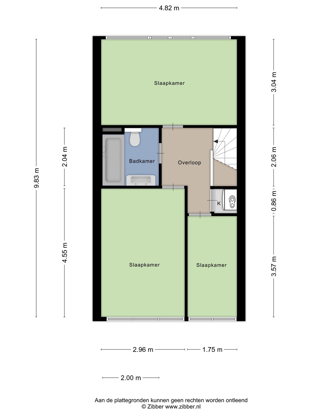 De 2e verdieping bestaat uit 3 slaapkamers en een badkamer.